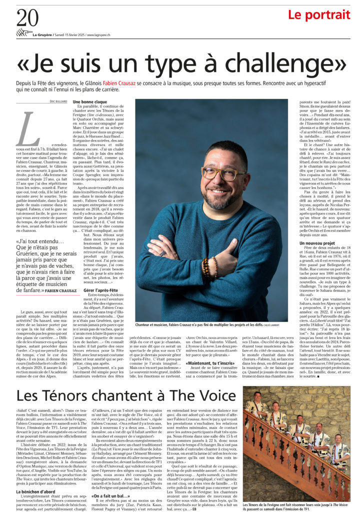Je suis un type à challenge Uncategorized / webadmin Parution dans le journal La Gruyère du 15 février 2025 Je suis un type à challenge Lire la suite »